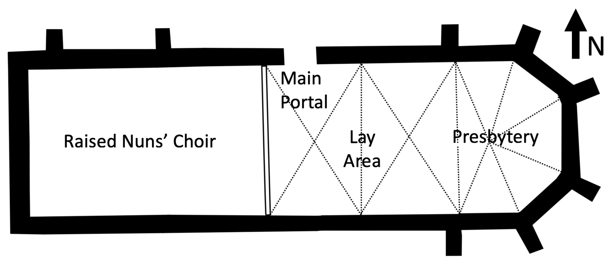 | 31 | Although all the churches analyzed belong to the Poor Clares, a fundamental study regarding the relationship between the spatial arrangement of the nuns’ choirs and the perception of the Eucharistic consecration is: (Bruzelius 1992). |