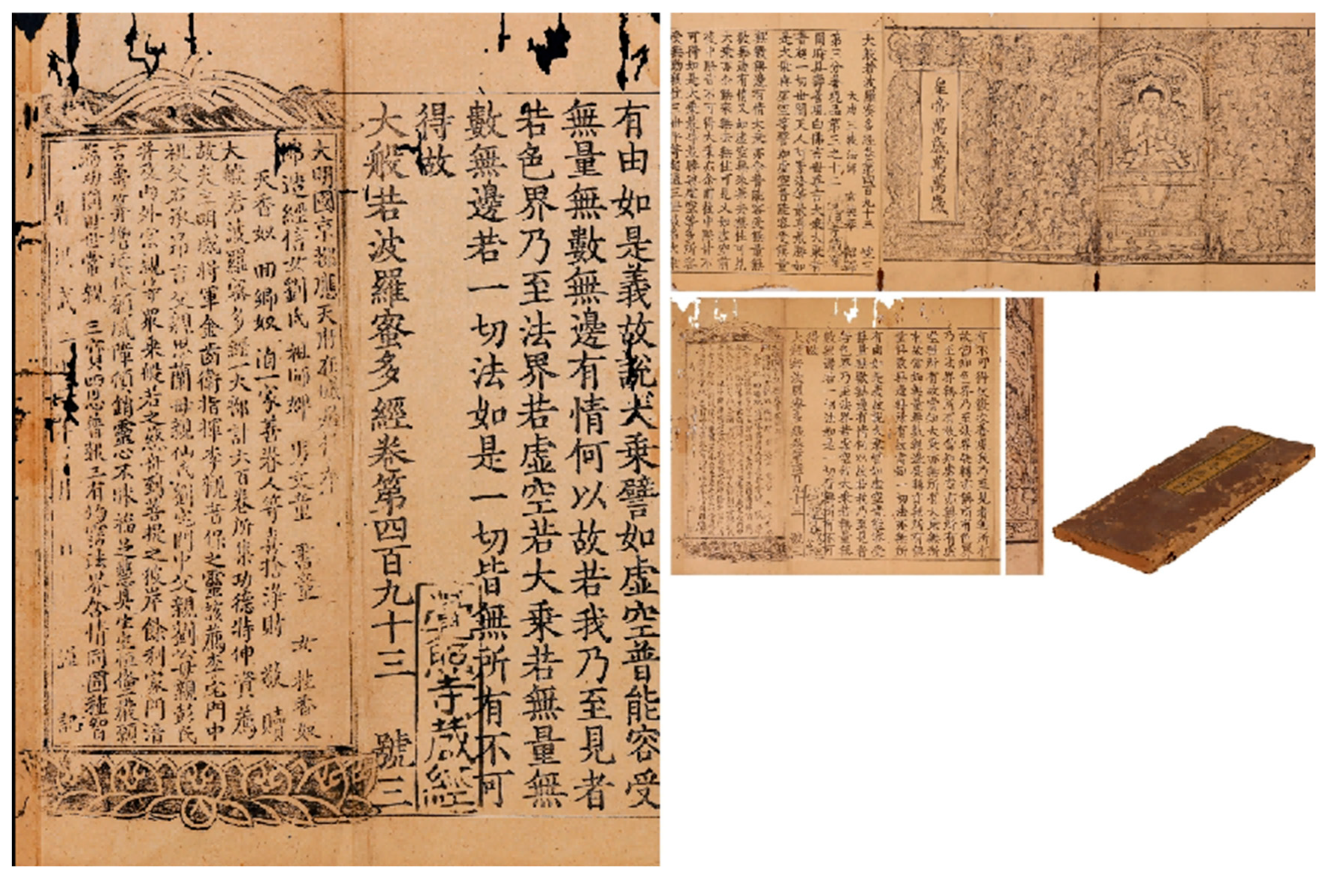 Puning Canon were stored in the printing houses where the scriptures were printed and bound; there was an interactive relationship between the printing houses and the Puning Temple, which owned the wooden plates. The printing houses could randomly arrange the frontispieces at the very beginning of the scriptures. However, they must have sought approval from the monks of Puning Temple 普寧寺.