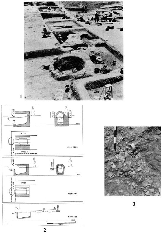 Ashdod Area D, an industrial area with kilns and pits (after M. Dothan 1971: 1—Plate 34:1; 2—Plan 12; 3—Plate 37:2).