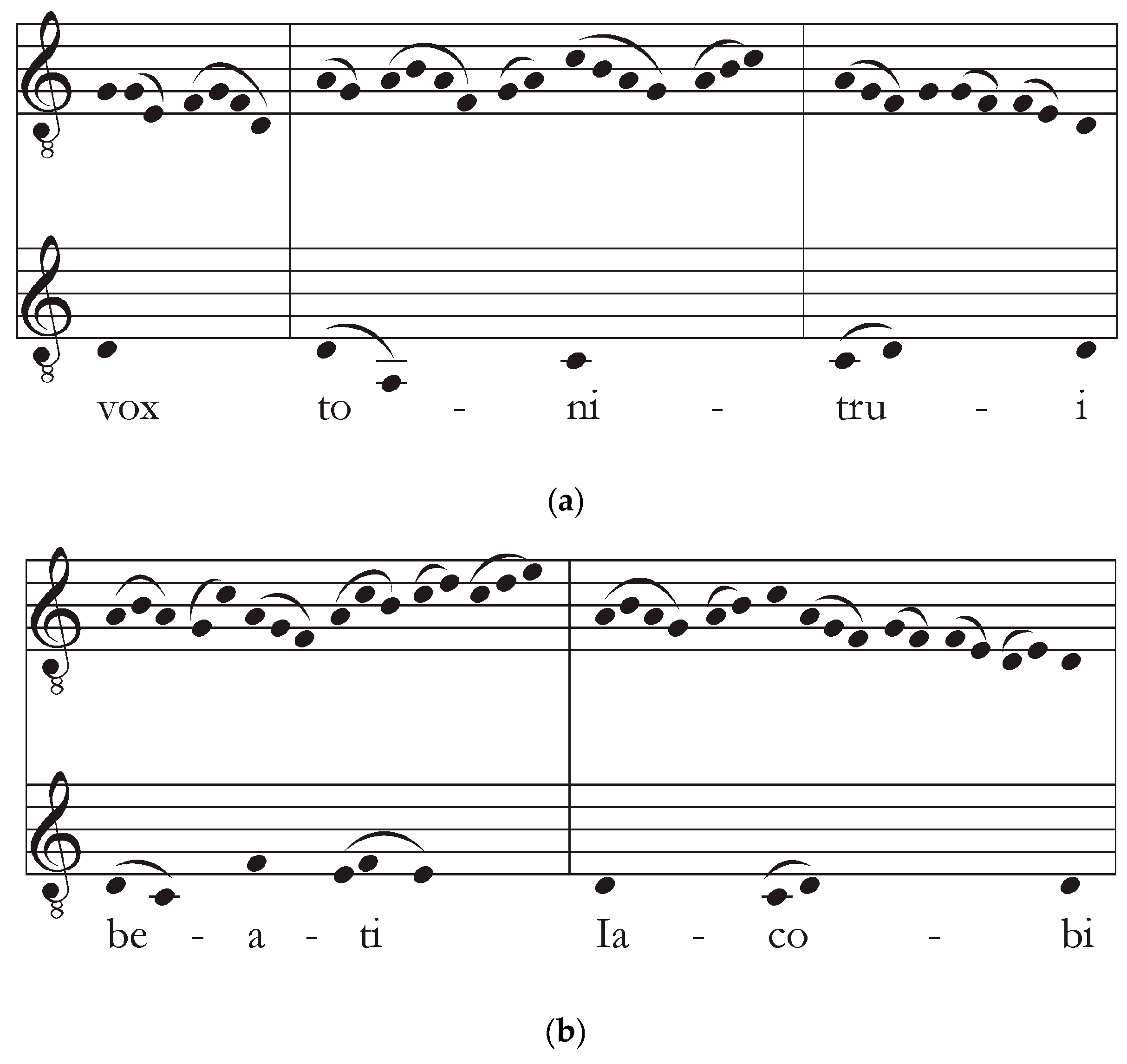 - Ruiz Torres, Santiago. 2017. New Evidence Concerning the Origin of the Monophonic Chants in the Codex Calixtinus. Plainsong and Medieval Music 26: 79–94. [Google Scholar] [CrossRef]