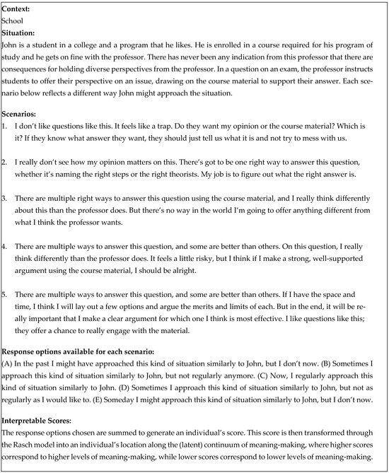 The construction of the scenarios to define each meaning-making position followed the Rasch measurement principles and procedures (See Ludlow et al. 2014, 2020):