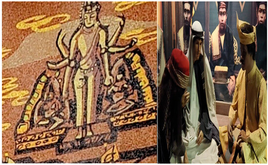 Left is a mural found in National Museum of Malaysia depicting the Hindu/Buddhist past of the Malay world and right is a diorama in the same museum depicting the official conversion to Islam of the Ruler of Melaka by Saiyid Abdul Aziz (a religious scholar from Jeddah).