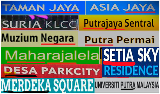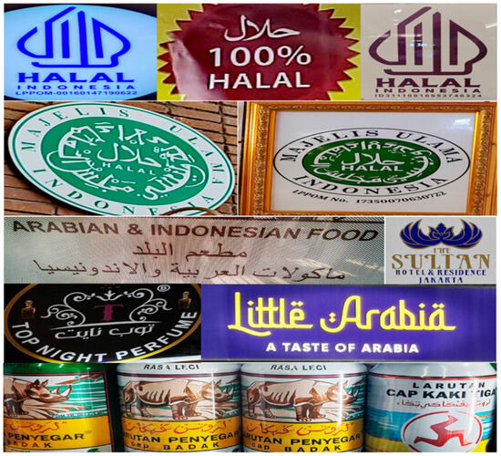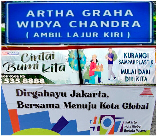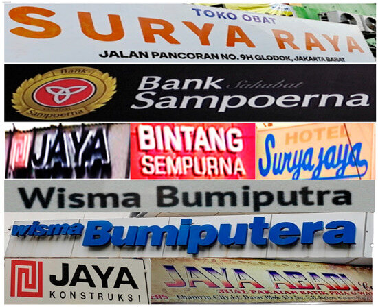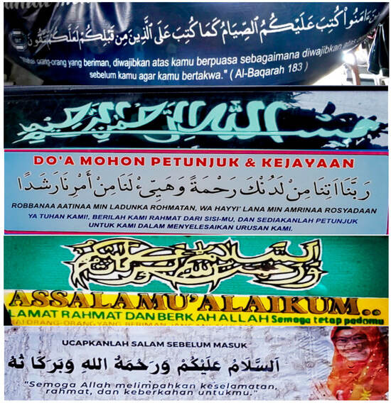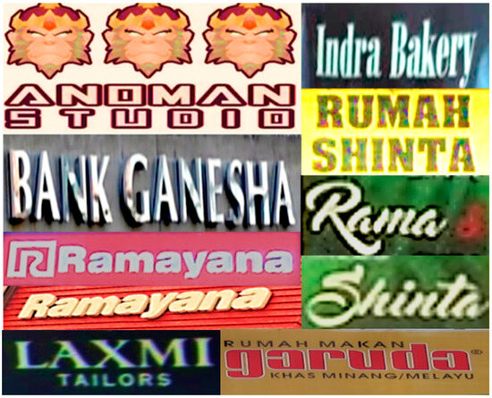 As another kind of linguistic landscape, many Indonesians (even Muslims) tend to use names related to Hinduism and/or Sanskrit in general. These names include Krisna, Indra, Laksamana, Sarasvati, Rama, Laksmi, Dewi, Cakra, Wijaya, Putri, Putra, Satya, Wisnu, Surya, Aditya, Ganesha. For example, an Indonesian Muslim politician is named ‘Giring Ganesha’. Some more details about Indonesian names can be found here https://www.awazthevoice.in/world-news/indonesian-muslims-celebrate-their-hindu-buddhist-past-hamid-naseem-shares-experiences-22421.html (accessed on 20 June 2025).