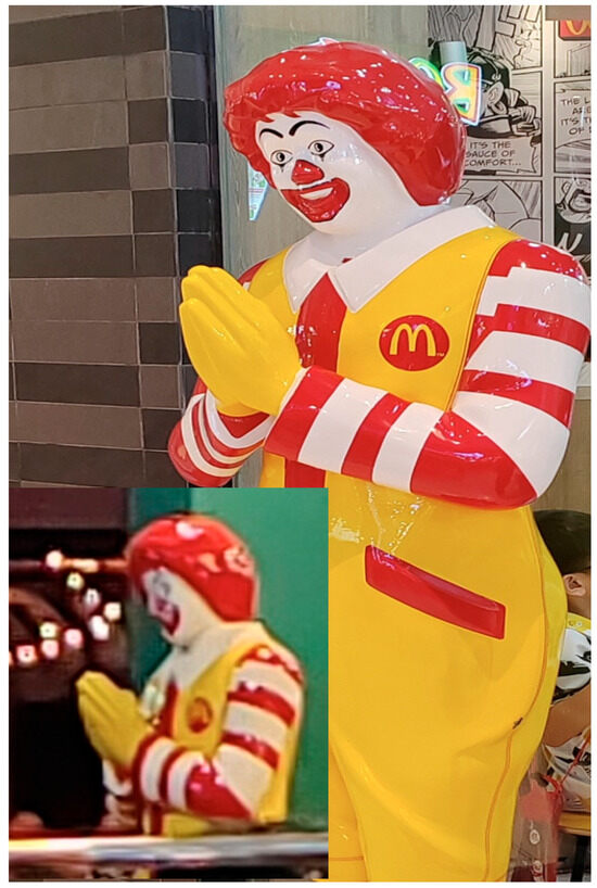 As some evidence of the multi-faceted and far-reaching influences of Hinduism/Buddhism and Indian subcontinent on Southeast Asia in general, several scripts in Southeast Asia (e.g., Thai, Balinese, Lao, Khmer, Burmese) are related to writing systems in the Indian subcontinent. In addition, a range of place names and loan words in Southeast Asia are traceable to/adapted from Sanskrit and/or various other South Asian languages. In Thailand, the Hindu/Buddhist influences are deep-rooted and visible (Gu 2025a). For instance, garuda (vehicle of lord Vishnu) appears on Thailand’s national emblem. Various Hindu shrines (Shiva, Brahma, Lakshmi, Parvati, Ganesha, Trimurti, Indra) can be found in central Bangkok and beyond. Hindu god Indra appears on Bangkok’s city emblem. Yakshas are a pervasive sight. Also, major scenes in Hinduism such as ‘Samudra Manthan’ or ‘the churning of the milk ocean’ (Gu 2025a) are depicted at Bangkok’s Suvarnabhumi International Airport (the name ‘Suvarnabhumi’ itself has Sanskrit origins, meaning ‘land of gold’). The Thai name for ‘Bangkok’ is ‘Krung Thep Maha Nakhon’. ‘Maha Nakhon’ is derived from Sanskrit, meaning ‘big city’ or ‘great city’. The Hindu epic Ramayana has also been localized in Thailand as ‘Ramakien’, which is essential to Thai culture and its literary canon. The namaste-like gesture ‘wai’ is commonly used (cf. Figure 6 for the gesture in McDonalds’ in Thailand). A similar Hinduism-Buddhism-inspired gesture called sembah is commonly used in Indonesia.