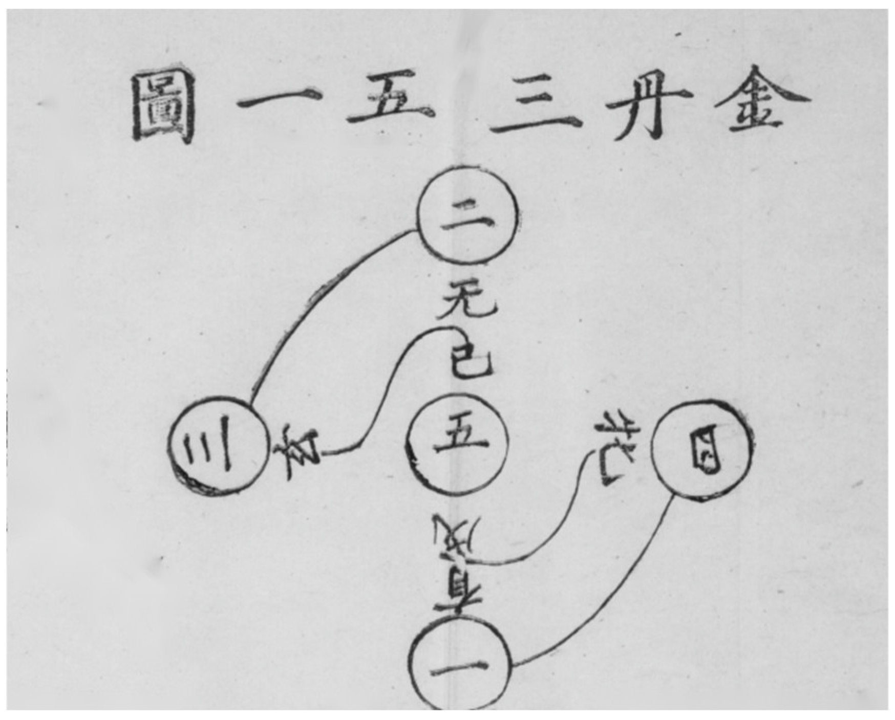 - He, Xin 何欣. 2025. Visual Alchemy: Alchemical Yijing Diagrams 丹道易圖 in the Illustrated Commentary on the Wuzhen Pian Based on the Zhouyi 周易悟真篇圖注. Religions 16: 812. [Google Scholar] [CrossRef]