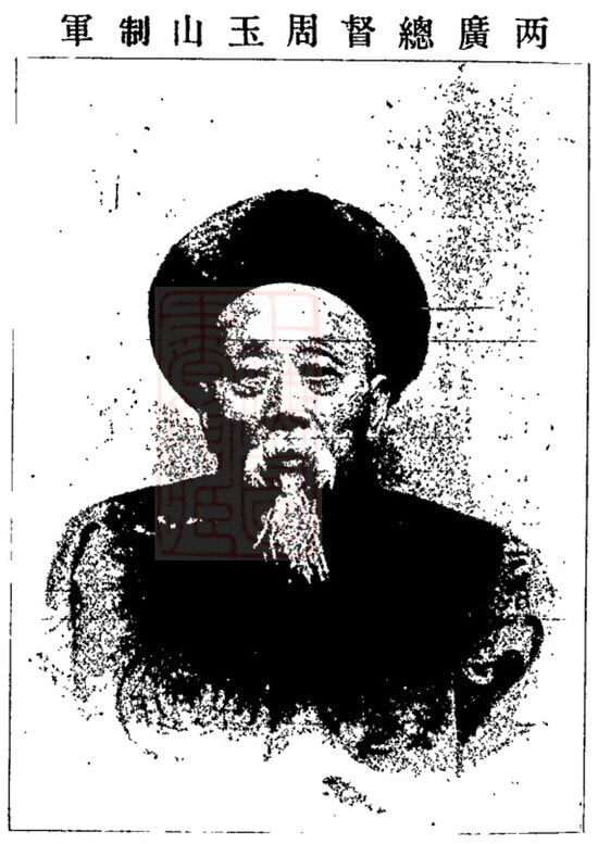 Beyond Shandong; officials from several other provinces also took an active part in the newspaper’s consignment scheme. Hu Xianglin (胡湘林); the Provincial Treasurer of Guangdong; remarked that the task should be “handled directly through the provincial educational commissioner to ensure efficiency” (Hu 1908, p. 1). Enshou (恩寿); the Governor of Shanxi; likewise expressed his willingness to cooperate; stating: “As for the consignment of The Chinese Weekly; I shall do my utmost within my humble capacity” (En 1907, p. 1). Zhou Fu (周馥); the Viceroy of Liangguang; also replied affirmatively: “Please send one hundred copies first; beginning with the first month of next year according to the Chinese calendar. We shall observe whether sales proceed smoothly and then consider an increase” (Zhou 1907, p. 1). Figure 4 shows a portrait of Zhou Fu that appeared on the newspaper’s cover