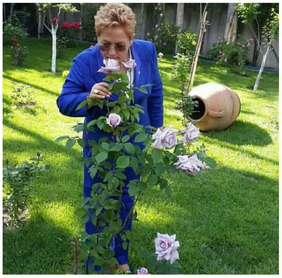 One common theme in the iconography of Zöhre Ana is her association with beauty. This is usually represented in pictures in the form of flowers; she is often photographed next to or holding a flower—especially a rose—in a garden, smelling one, or seated and surrounded by potted or cut flowers (see Figure 5). Those devotees skilled in graphics are fond of superimposing floral frames around portraits of her. The association of Zöhre Ana with flowers and beauty may derive in part from the fact that she is a woman, but beauty is also a valued theme in Sufism, and the rose is its quintessential symbol.