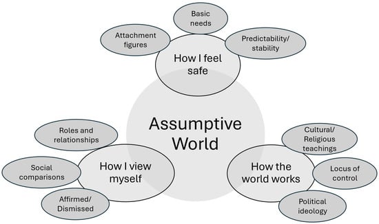 Several scholars have discussed the concept of the assumptive world in relation to grief. The assumptive world is formed very early in life, most likely in tandem with the attachment system, and shaped through various life experiences as one grows and matures. () suggested the three main aspects that comprise the overarching assumptive world are that (1) the world is benevolent, (2) the world has meaning, and (3) the self is worthy. () adjusted the components of the assumptive world to include life experiences that might not necessarily lead to an understanding of the world in a positive way. The key here is that the assumptive world develops and is maintained to preserve coherence, meaning, and predictability for the individual, and that may include positive or negative views about aspects of life, such that people may not all be good or the world may not be benevolent. For example, a child who has grown up in a stable, loving home will have a completely different assumptive world and understanding of relationships than a child who has grown up in the foster care system and has been bounced around between different homes. ’ () description of the assumptive world includes the following three main areas: