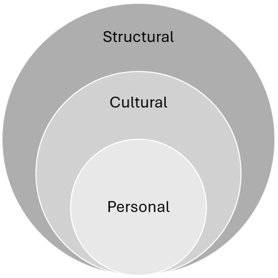 Human experience can be described in layers, where the individual (or micro level) is situated within a local network of friends and family, which in turn exists within a broader social and community context (mezzo level). This framework is further encompassed by overarching structural and political influences (macro level). Every individual experience is viewed through lenses that are inherently social, cultural, and political. These layers are interconnected, and in reality, it is impossible to distinguish them from each other. () emphasizes the necessity of considering not only the personal aspects but also the cultural and structural dimensions that inform an experience, a concept he refers to as PCS analysis. Figure 2 illustrates this model.