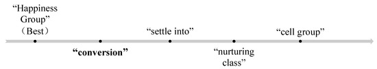If a “Best” decides to be baptized and accept Christ through the Happiness Group program, it marks a “successful conversion” (成功转化). Afterward, the new believer is required to “settle into” (落户) the “nurturing class” (养育班), which is a “new life” gospel course designed for new members. Finally, they are expected to join the “cell group” (细胞小组) and engage in regular church activities9. The Happiness Group program operates like an efficient production line, with each stage preparing the believer for the next and guiding them toward further training (Figure 2).