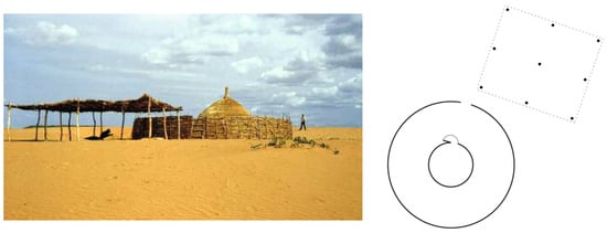 This would be a topological configuration similar to that expressed by French architects Anne Lacaton and Jean Philippe Vassal in their first construction project, a small dwelling in Niger, in which they differentiated the domestic indoor space, an open-air space, a covered, semi-public space, from the rest of the world. This reference serves to explain the three spaces into which the world is divided according to the World House project. There would be an interior space, an intermediate space or space of proximity to the construction and, finally, a completely exterior space. These three spaces would correspond to three conditions of the soul: the one that has found its Creator, the one that seeks Him and the one that lives indifferently (Figure 8).