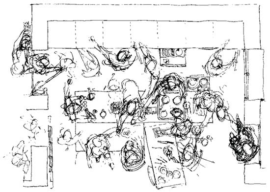 Ground plan of a kitchen with actions (c. 2000). Fernando Lancho, artist.