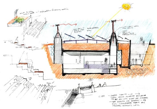 Sketch. The Australian Opal Centre (2017). Glenn Murcutt, architect.