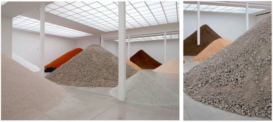 This phenomenology of the material leads us to the enormous flow of energy that architectural construction sets in motion. It makes us aware of the overwhelming extent that, against all odds, has become the focus of attention for artists such as the Aragonese Lara Almarcegui, who, for certain buildings, has achieved her aim of quantifying the measurement—weights—of their components or has displayed them as mere piles of inert matter () (Figure 21).