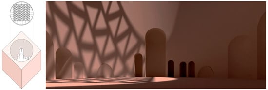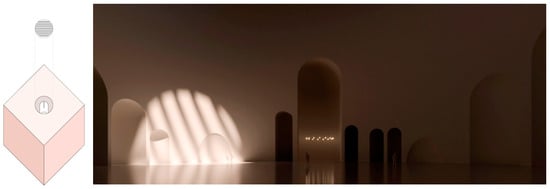 The nature of the roof in the World House project—in principle inaccessible to ordinary users—would be different from the walls. The initial solution was based on a more complex design, as befits its structural character, with sunlight and starlight permanently shining through it. However, this configuration produced an excess of light. Only once the “right light”—to use the inspired expression coined by the architect Rafael de La Hoz Arderius—had been determined, could the necessary atmosphere for the project be created: a single beam of light, moving slowly but constantly, which only a keen eye can detect and which creates a new gleam and a myriad hues where it comes into contact with the ordered materiality (Figure 23).