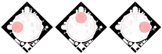 The geometry chosen, a circular ground plan, would admit the inclusion of other religions without distorting the configuration. In fact, the initial proposal of these three religions is not intended to be exclusive or restrictive, quite the opposite. The greatest ambition of this idea, of this project, would be to include as many religions as possible, always in an atmosphere of respect, genuine interest and trust. This expansion would require an increasingly large space precisely to maintain a respectful distance between the different spaces (Figure 31).