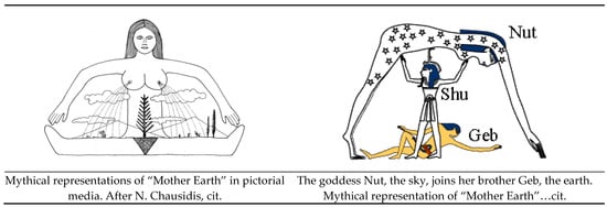 - Chausidis, Nikos. 2012. Mythical Representations of ‘Mother Earth’ in Pictorial Media. Archaeology of Mother Earth Sites and Sanctuaries Through the Ages. Rethinking Symbols and Images, Art and Artifacts from History and Prehistory. Edited by G. Terence Meaden. Oxford: BAR International, p. 2389. [Google Scholar]