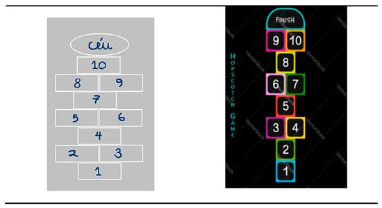 - Ragazzi, Gaudenzio. 2010. “Il “Gioco del Mondo” e il Viaggio dello Sciamano”. BCSP Bollettino del Centro Camuno di Studi Preistorici—vol. XXXVI. Cfr. Available online: https://en.wikipedia.org/wiki/Hopscotch (accessed on 11 March 2022).