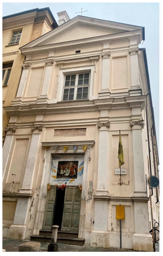 In 2000, the Catholic Archdiocese granted the Greek Orthodox community use of the Church dedicated to the Annunciation, known as “of the Orphans” (“delle Orfane”), located in the historic center of Turin (Quadrilatero Romano, Circoscrizione I). The church is legally owned by the Ancient Institute of the Poor Orphans of Turin and is part of a larger building complex named after the Most Holy Innocents. The church is, however, currently managed by the Greek Orthodox Parish of the Nativity of St. John the Baptist. Originally built in 1667, the structure first served as a chapel for the city’s female orphanage. As Father Restagno explained to me in an interview, “the Greek Orthodox community occupies this place through ‘a friendly loan’ without a contract” (7 February 2024).