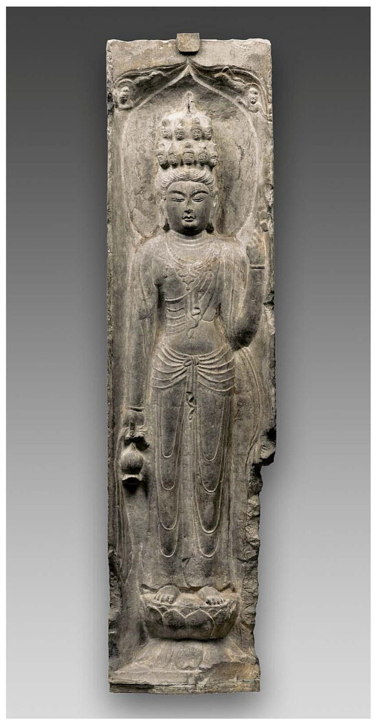 Wang 2003). By its own account, the construction lore of the Seven-Treasure Tower in the capital spells out its own demise. The guarding of the treasures is said to be slack; Brahmins destroy the shares given to them. The real-life Seven-Treasure Tower met the same destiny. The sculptural pieces, once part of the edifice, were eventually dispersed in Japan, Europe, and the United States. One sculptural piece—an Eleven-Headed Guanyin—from the edifice entered the collection of the Museum of Fine Arts, Boston, in 1906 (See