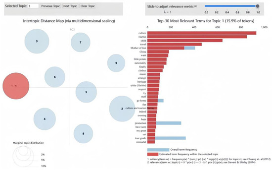 To clarify the multitude of themes emerging from the LDA model, this study reorganizes the nine original topics into three broader categories: (1) intentional preservation of cultural-spiritual heritage, (2) affirmation of communal identity and belonging, and (3) strategic adaptation and negotiation of traditions in modern contexts. This restructured categorization emphasizes how individuals and communities relationally, cosmologically, and ritually articulate, assert, and negotiate human will in the digital representations of Northeast China’s Shamanic culture.