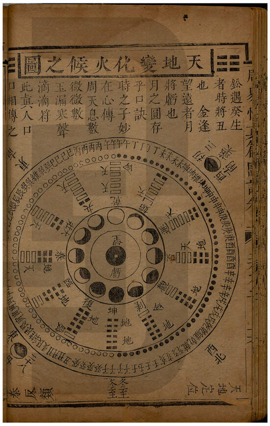 Diagram of Celestial and Terrestrial Transformations in Huohou (天地變化火候之圖). This diagram originates from the Illustrated Commentary (Cheng [1611] 1717, Wood Volume, folio 18).