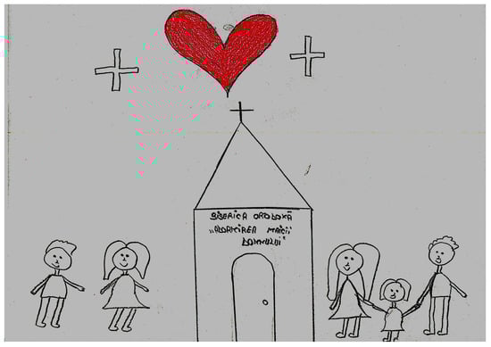 The spiritual concerns of children everywhere are natural and help them develop. Children grow up in anticipation of meeting divinity and organize their moral values around this expectation (). Their spiritual experiences, which do not necessarily align with canonical religiosity, express impressive representations about humanity’s place in the world (). Previous research on Romanian children’s religiosity (; ) highlighted their openness to a spirituality broader than Christianity. Children who participated in the research were mostly from Orthodox Christian families. Children are naturally religious, without canonical conditioning, even with spectacular deviations from dogmas (for example, pantheism, or God’s femininity). Children have God in mind before gradually attaching Christian features of catechetical origin.