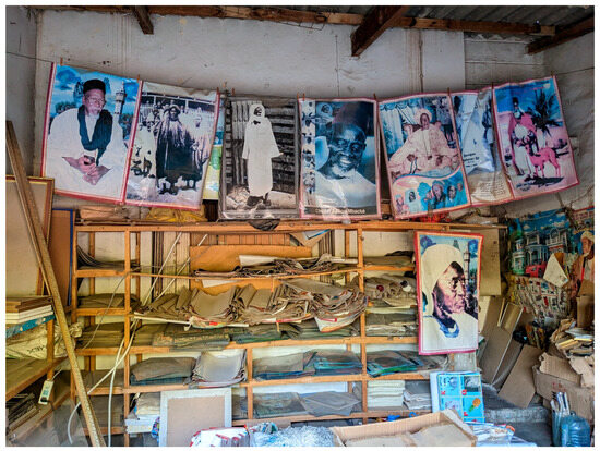 Leaders of these Sufi tariqas have left an enduring legacy in Senegal. The founder of the Muridiyya Sufi tariqa, Sheikh Amadou Bamba, known to his followers as Serigne Touba, is so important that his pictures can be found in many public spaces (Roberts et al. 2003, also see Figure 1). Sheikh Ibrahim Niasse (1900–1975), a Senegalese Muslim and the founder of the Fayḍa branch of the Tijaniyya order, today remains popular among his followers not only in Senegal but throughout the entire West African region and in the diaspora. In the Sufi order he founded, Niasse appointed and taught notable women who became religious leaders. Since 2000, women religious leaders emerged in Dakar, leading mixed-gender Muslim communities (Hill 2018), playing an even more prominent role than in Henan, which has a tradition of female mosques and schools.