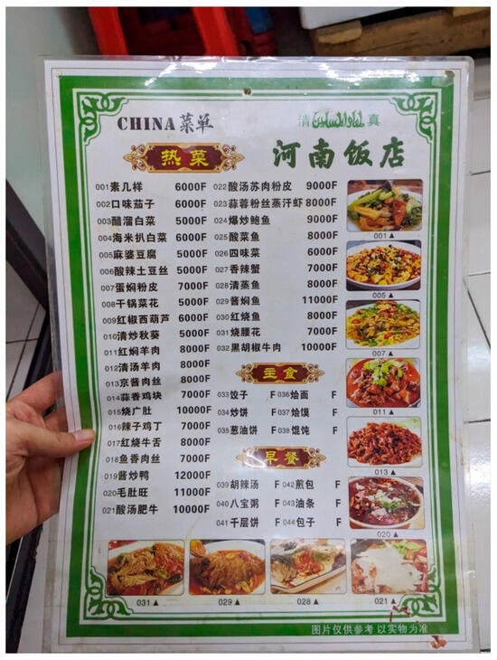 The Chinese menu of the halal Henan Restaurant in Dakar. Author. 11 December 2022.