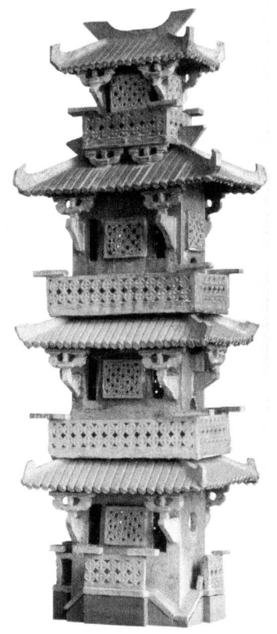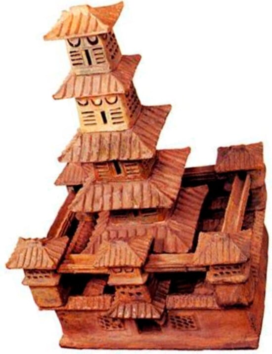 The Daode Jing describes the Ling-tai (靈臺, Spirit Altar) as a raised, high structure used by kings, particularly during famine. The text notes that “A tower, tai, of nine storeys was raised out of the mud”. Berglund (1990, pp. 257–67) suggests that Buddhism incorporated several pre-Buddhist religious elements and architectural features in China, and that the Ling-tai may have served as a prototype for the later pagoda. This connection is reinforced by wooden watchtowers (guan or que) and multi-storied pavilions (lou or ge), which share structural and symbolic similarities with Buddhist architecture.