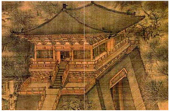 Early architectural forms varied; the tai, xie, guan, and que constructions fulfilled similar functions across different contexts, including watchtowers for surveillance, residences for rulers and aristocrats, venues for religious and ritual performances, and pavilions for retreat and contemplation. Over time, these functions were centralized within the tai structure, which combined materials, construction techniques, and design elements from other building types. The construction methods of tai, xie, guan, du, and que primarily relied on stacking timber members in successive layers atop a rammed-earth platform. This technique later influenced the construction of Buddhist multi-story structures such as pagodas. This “piled-up” structural method became a defining characteristic of East Asian wooden architecture, demonstrating continuity from pre-Buddhist military and administrative buildings to Buddhist temple complexes (Nakamura 1986; Kim and Park 2017).