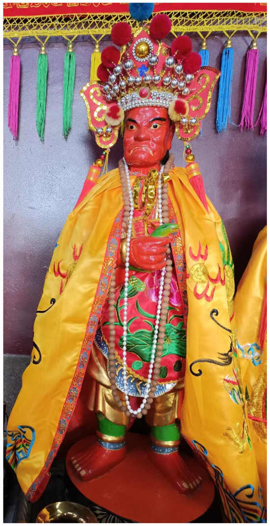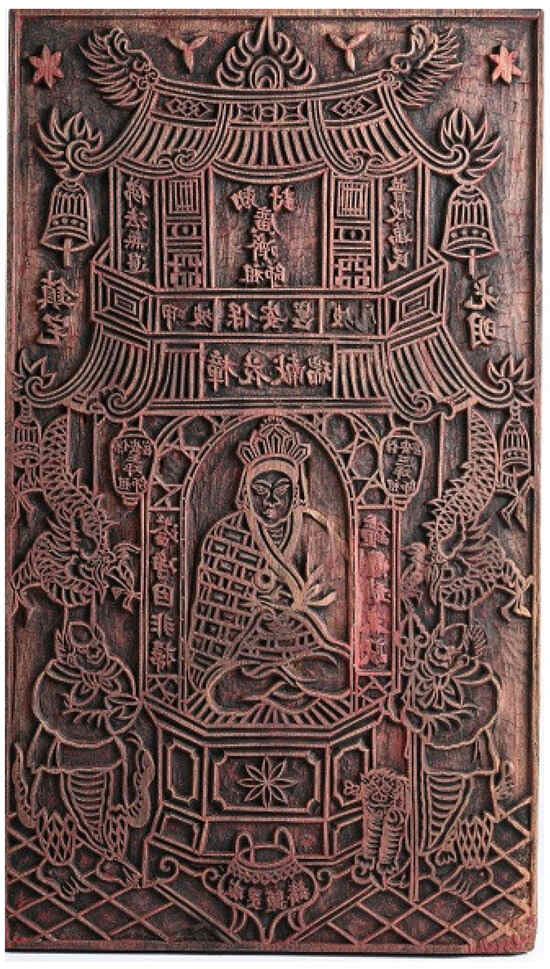 Third, it benefited from the catalytic role of mythological narratives. Among them, the legend of Sanping Patriarch subduing venomous serpents and ferocious tigers—and turning them into divine attendants—played a central role. As remarked by Su (2025, p. 203), “the serpent’s inhuman form is transformed into a human-like being through the power of Sanping Patriarch.” It is further endowed with divinity and becomes an object of worship (Guo 2013, p. 17). However, this process of deification was not without difficulty—the tale of the Patriarch subduing mountain demons metaphorically represents the hardships he faced in establishing a Buddhist temple in this remote region (Shi 2004, p. 138).