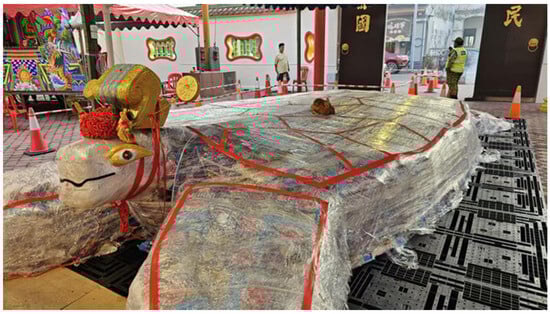 For example, the Sanping Patriarch’s birthday celebration at Poh Onn Kong Temple occurs on the sixth day of the sixth lunar month. On the day of the Patriarch’s birthday, the temple hosts a ritual to pray for blessings by touching a turtle23 (Figure 7), which is believed to bring good luck to the person and their family. After the completion of the Blessing Turtle Ceremony at the Poh Onn Kong Temple in Malacca, part of the rice collected during the event is distributed to worshippers for their safety and blessings. At the same time, the remainder is generously donated to elderly care homes, orphanages, and refugee groups regardless of ethnicity.