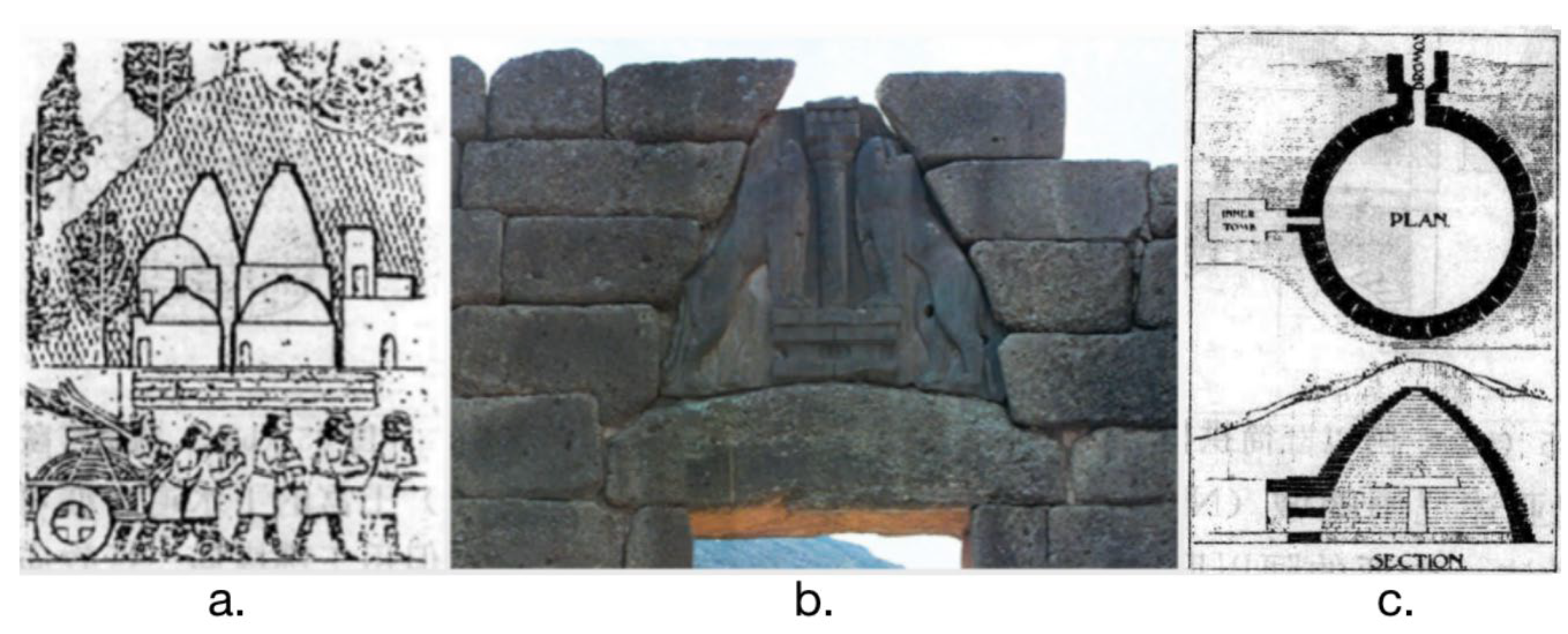 - Corbelled Lion Gate lintel at Mycenae citadel (Figure 15b);