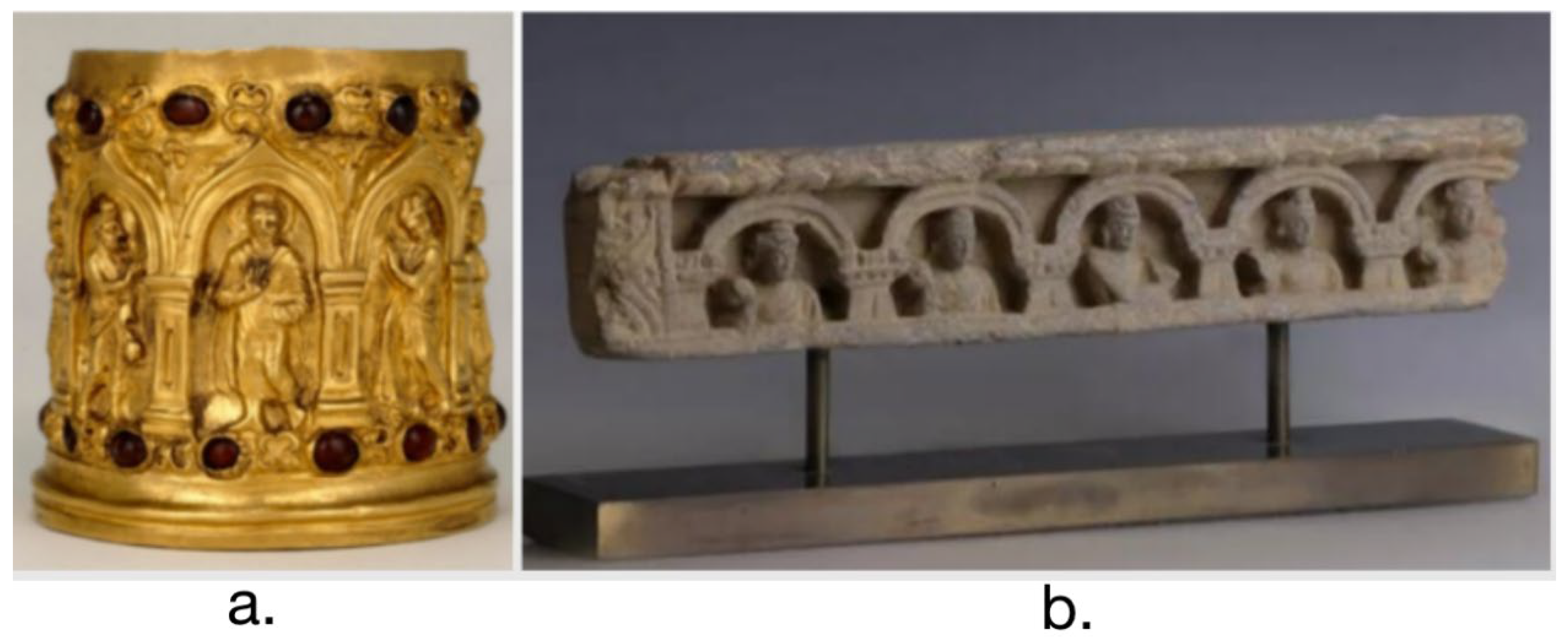 | 5 | The dating of architectural sites from the Kushan Kanishka period, along with the Bimaran gold reliquary and coinage depicting Buddha images discussed later in this text, has been established through prolonged scholarly discourse to approximately c.127 CE. Refer to Robert Bracey’s comprehensive 2017 study, see (Bracey 2017, p. 48). |