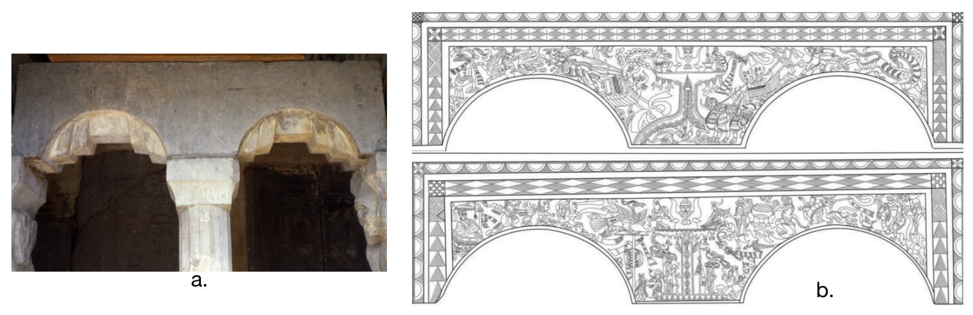 - Zhangguanzhuang Tomb, Linyi (Shandong): Twin-arch in the front chamber decorated with auspicious beasts (Figure 14).