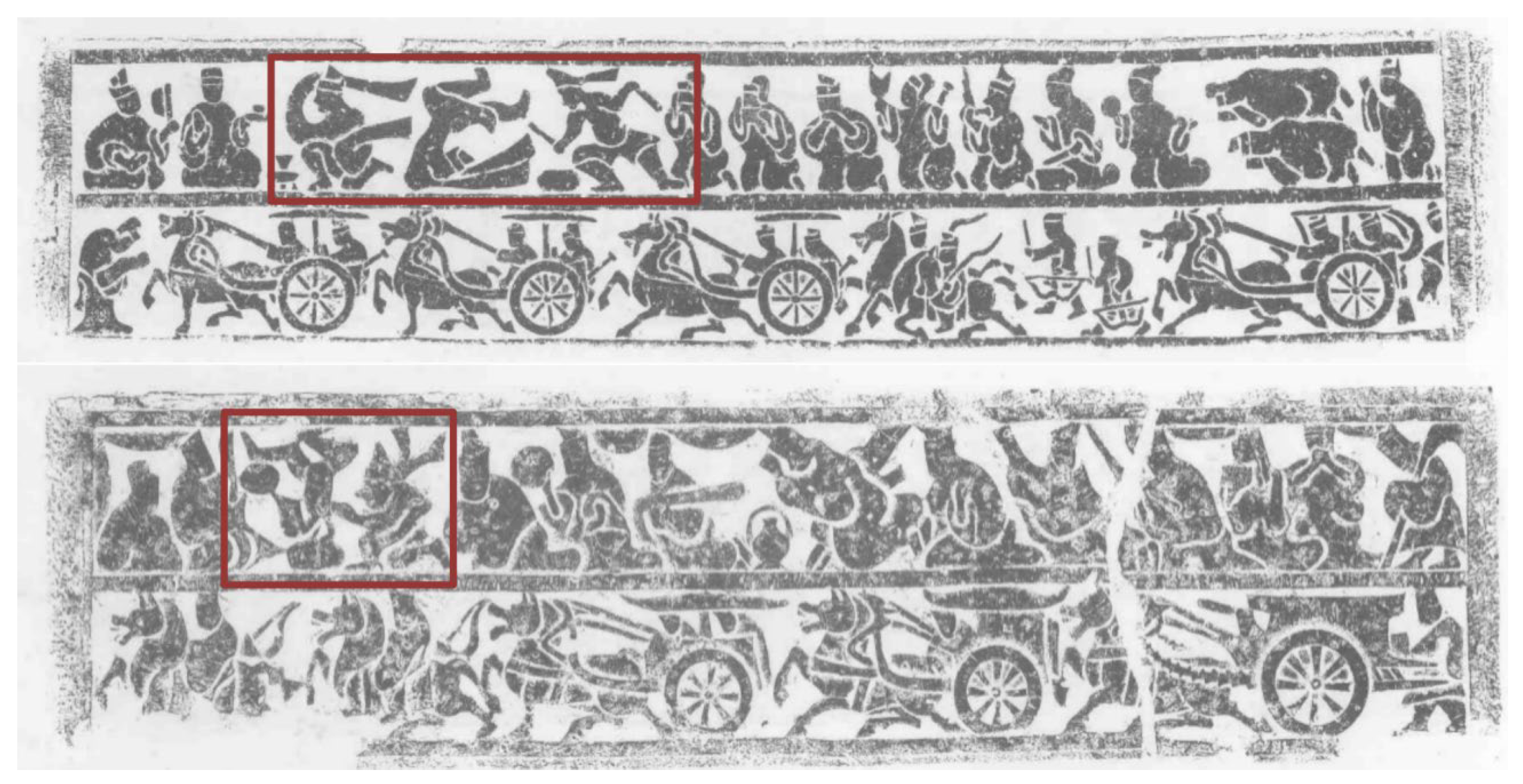 - Zeng, Zhaoyu 曾昭燏, Baogeng Jiang 蔣寶庚, and Zhongyi Li 黎忠義. 1956. Yinan gu huaxiangshimu fajue baogao 沂南古畫像石墓發掘報告 [Excavation Report of the Ancient Stone Relief Tomb at Yinan]. Beijing: Wenhuabu wenwu guanliju (Cultural Relics Bureau, Ministry of Culture), p. 66. [Google Scholar]
