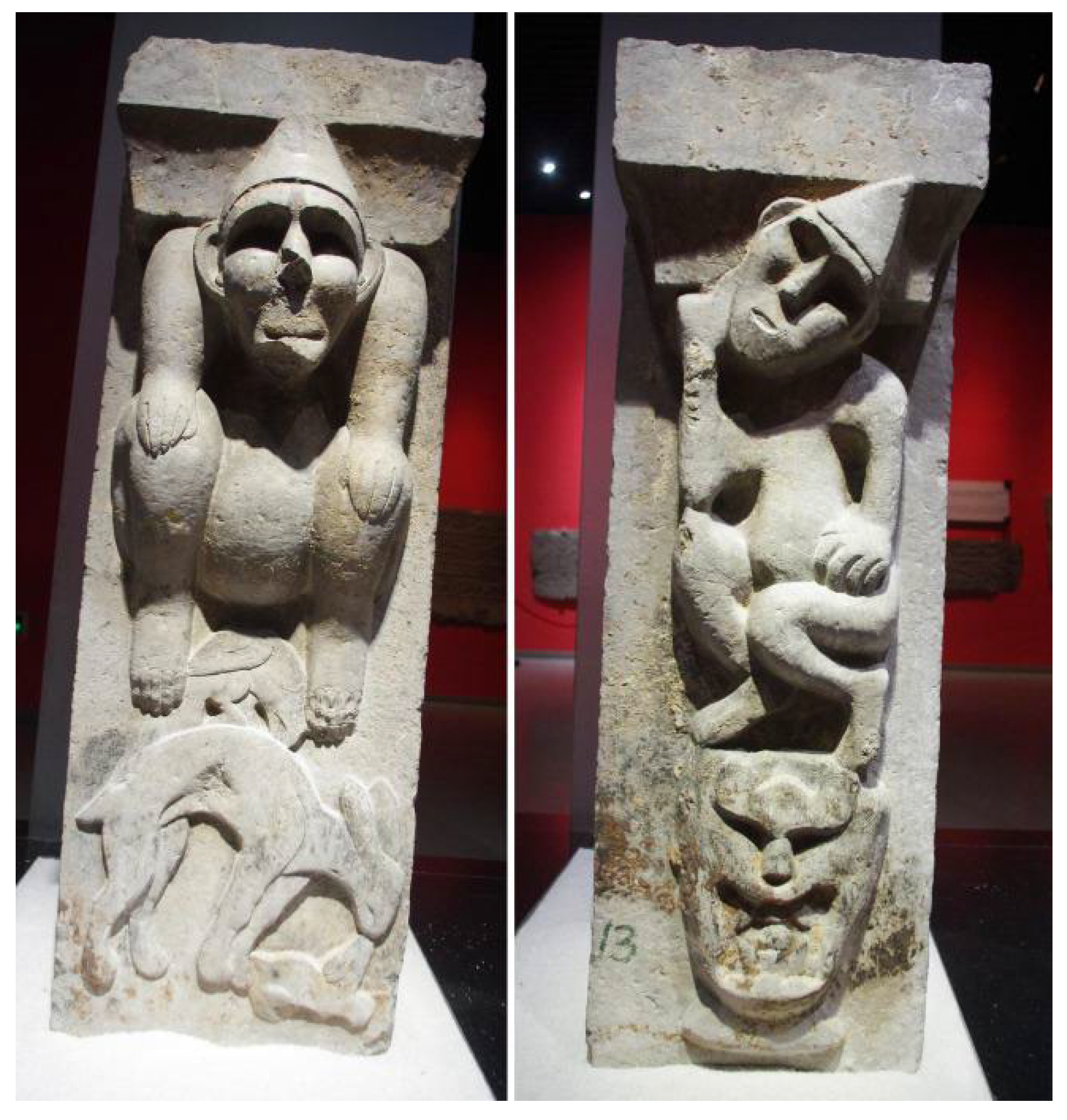 - Chen, Suting 陳素婷. 2017. A Study on the Classification of Columns in Han Dynasty Stone Carving Tombs in Xuzhou Area 徐州地區漢畫像石墓柱分類研究. Master’s thesis, Jiangsu Normal University, Xuzhou, China. [Google Scholar]