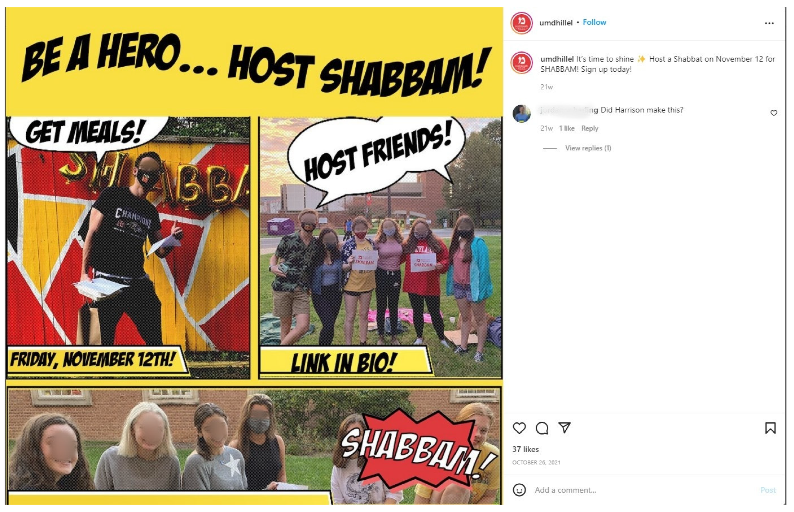 Figure 1. Sample screenshot of a Hillel Instagram post.