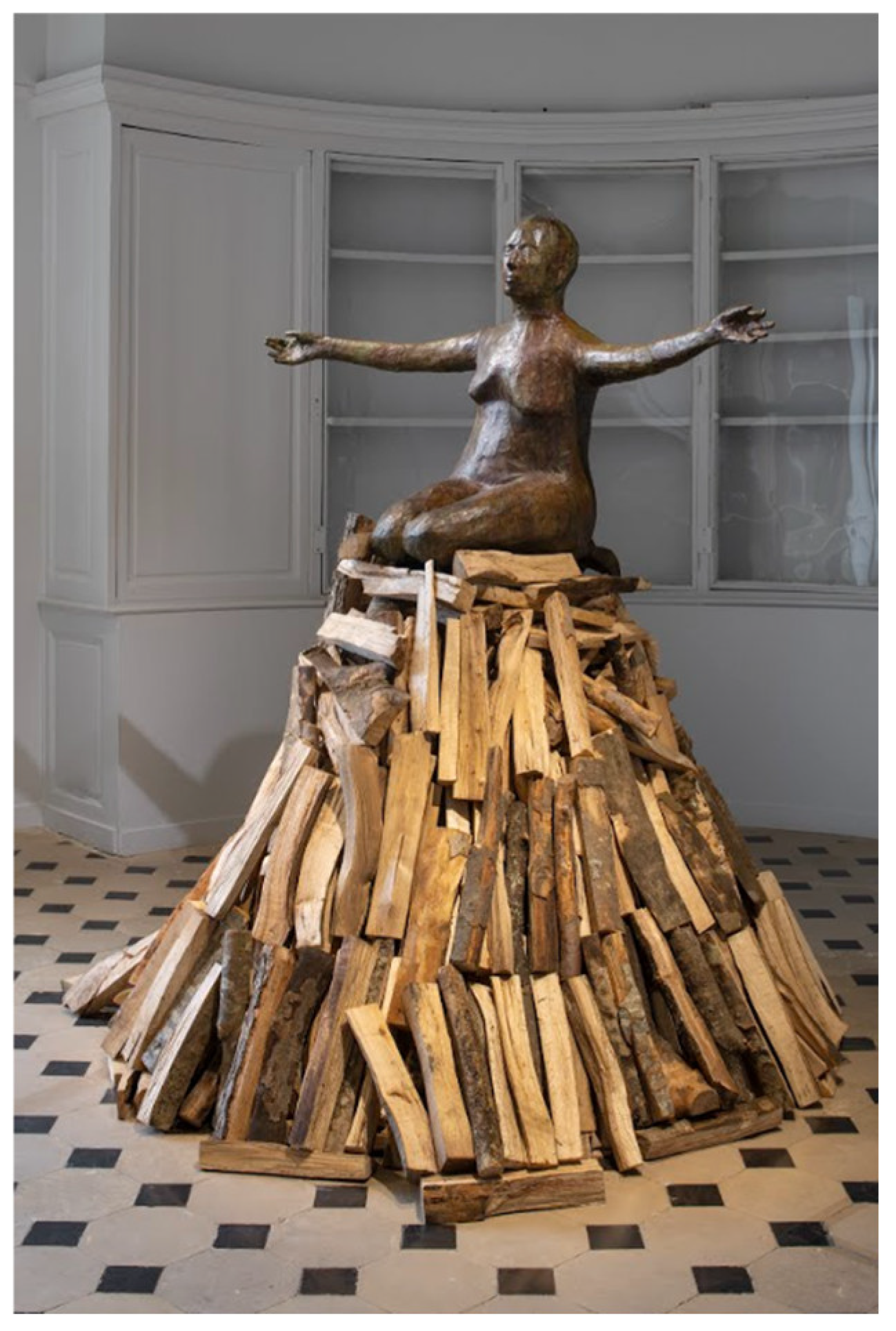 Figure 7), an artist who has consistently worked on the relationship between body, spirituality, and memory. The piece explicitly alludes to women burned at the stake—both within the historical context of the witch hunts and in its archetypal dimension. Yet instead of depicting a defeated body, Smith presents a figure that accepts her fate with defiant serenity. The sculpture does not seek to provoke facile compassion but rather to elicit an uncomfortable reflection on how social and institutional violence has been inscribed upon female bodies (