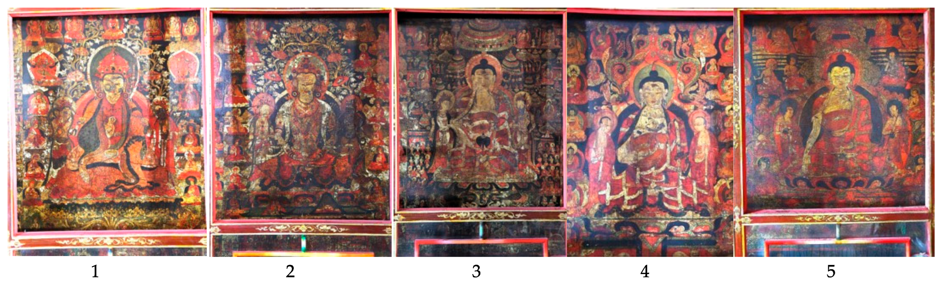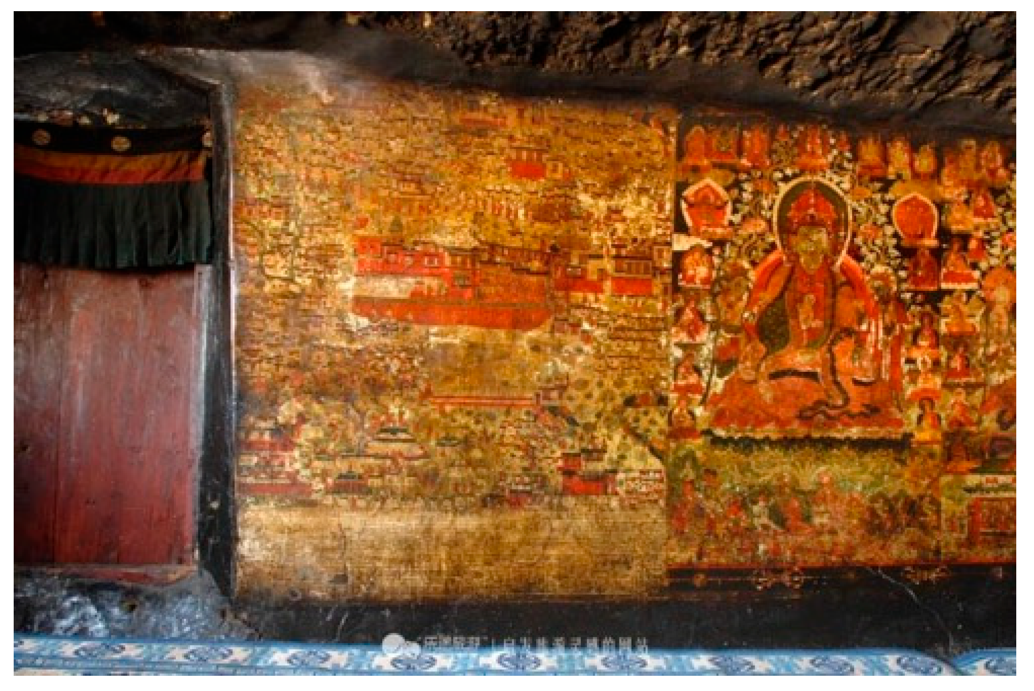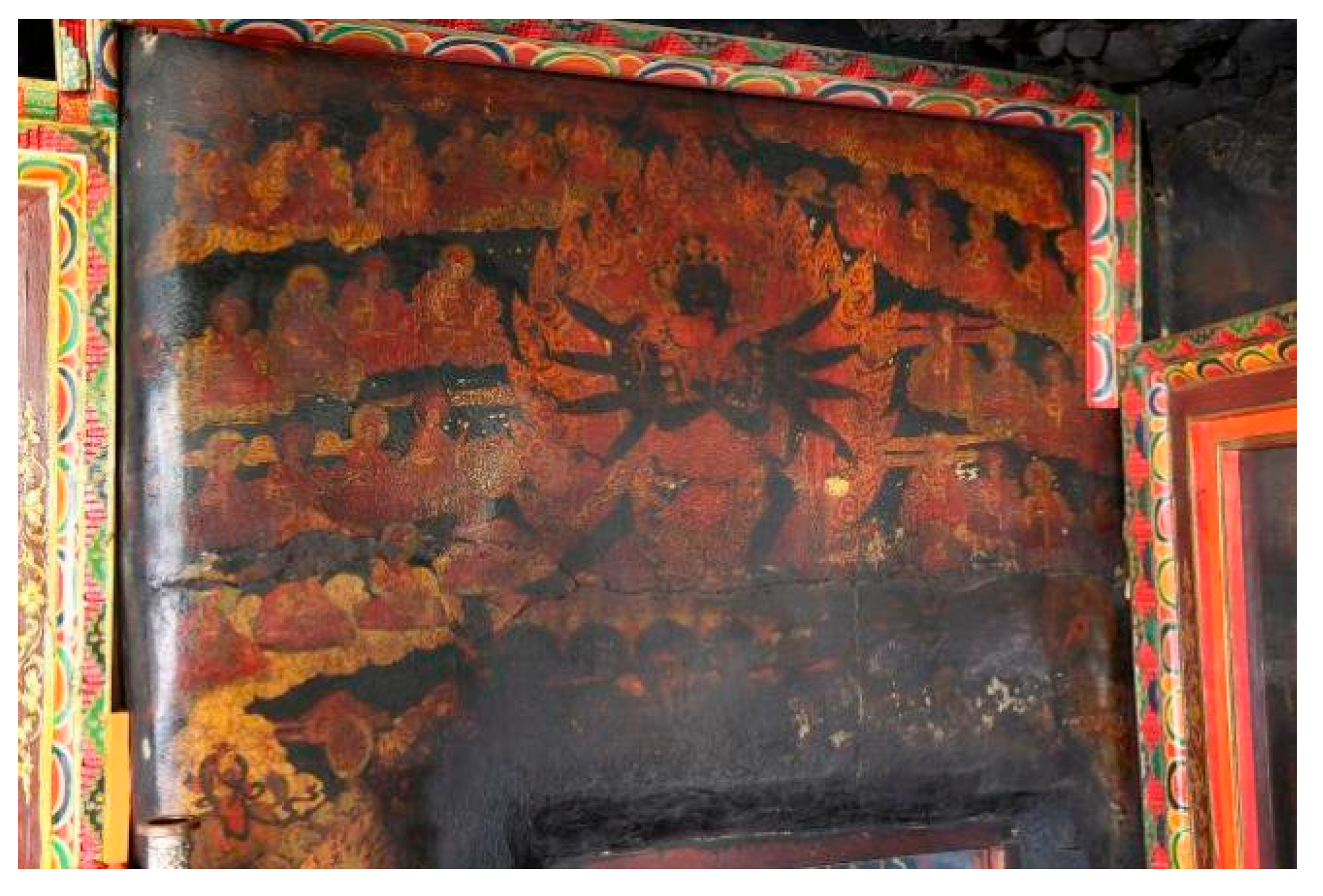 - Tibet Autonomous Region Cultural Relics Management Committee 西藏自治區文物管理委員會, ed. 1994. Xizang fojiao siyuan bihua yishu 西藏佛教寺院壁畫藝術 [Tibetan Buddhist Monastery Mural Art]. Chengdu: Sichuan People’s Publishing House四川人民出版社, pp. 162–65. [Google Scholar]