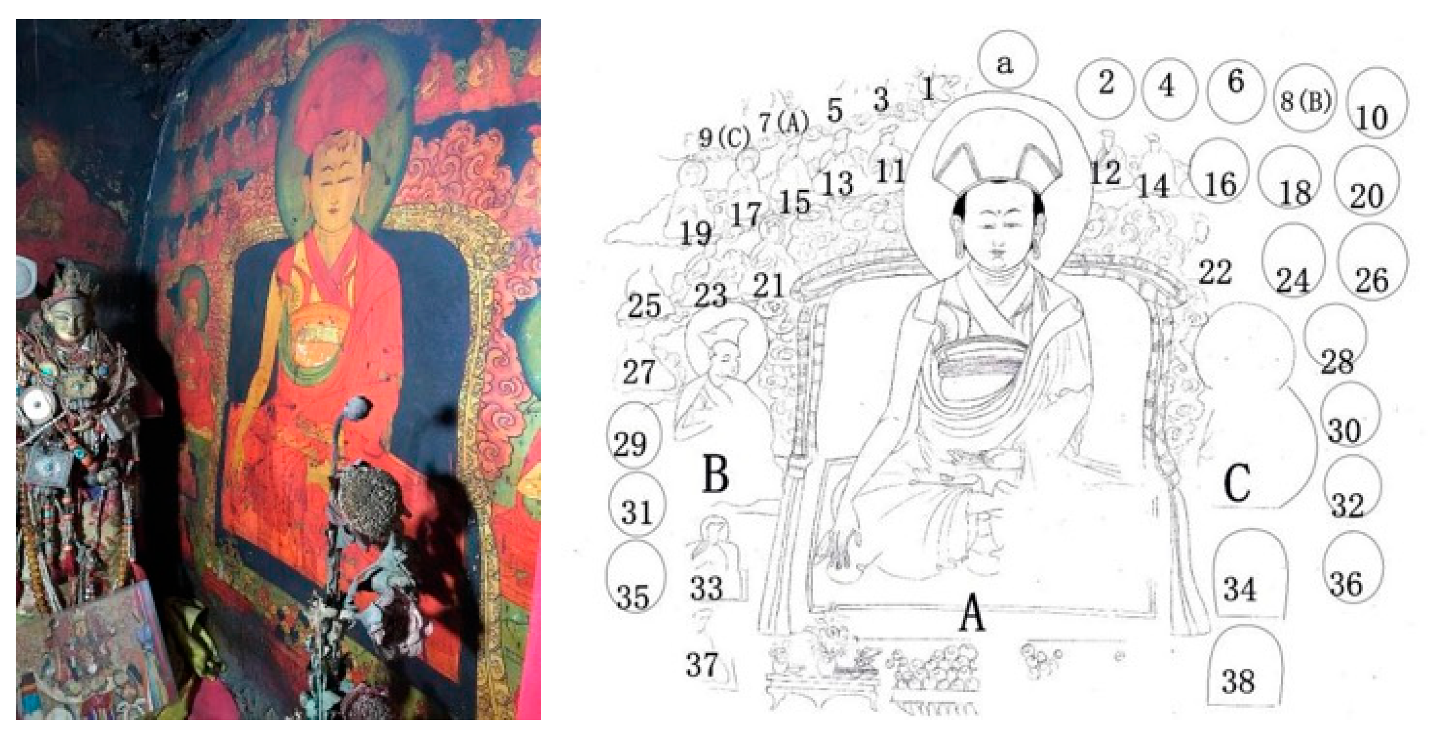 3.2.4. Pictorial Evidence for the Revival of the ’Bri Gung Bka’brgyud School in Western Tibet