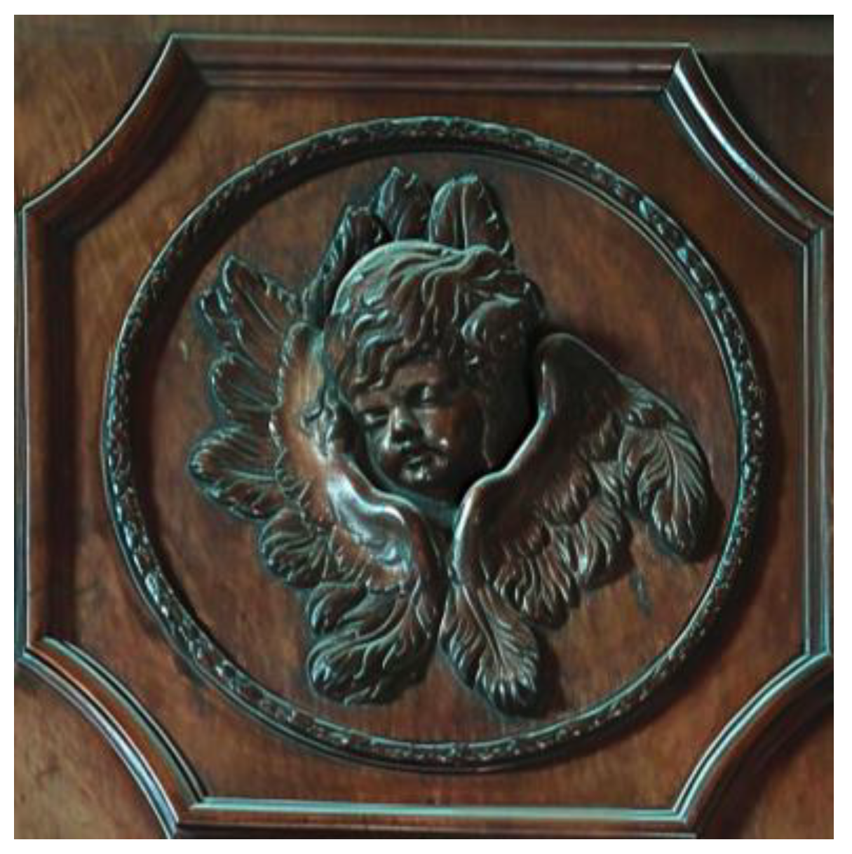 ), previously addressed on the inner side of the entrance door to the Sacristy of the Virgin (Figure 18a).