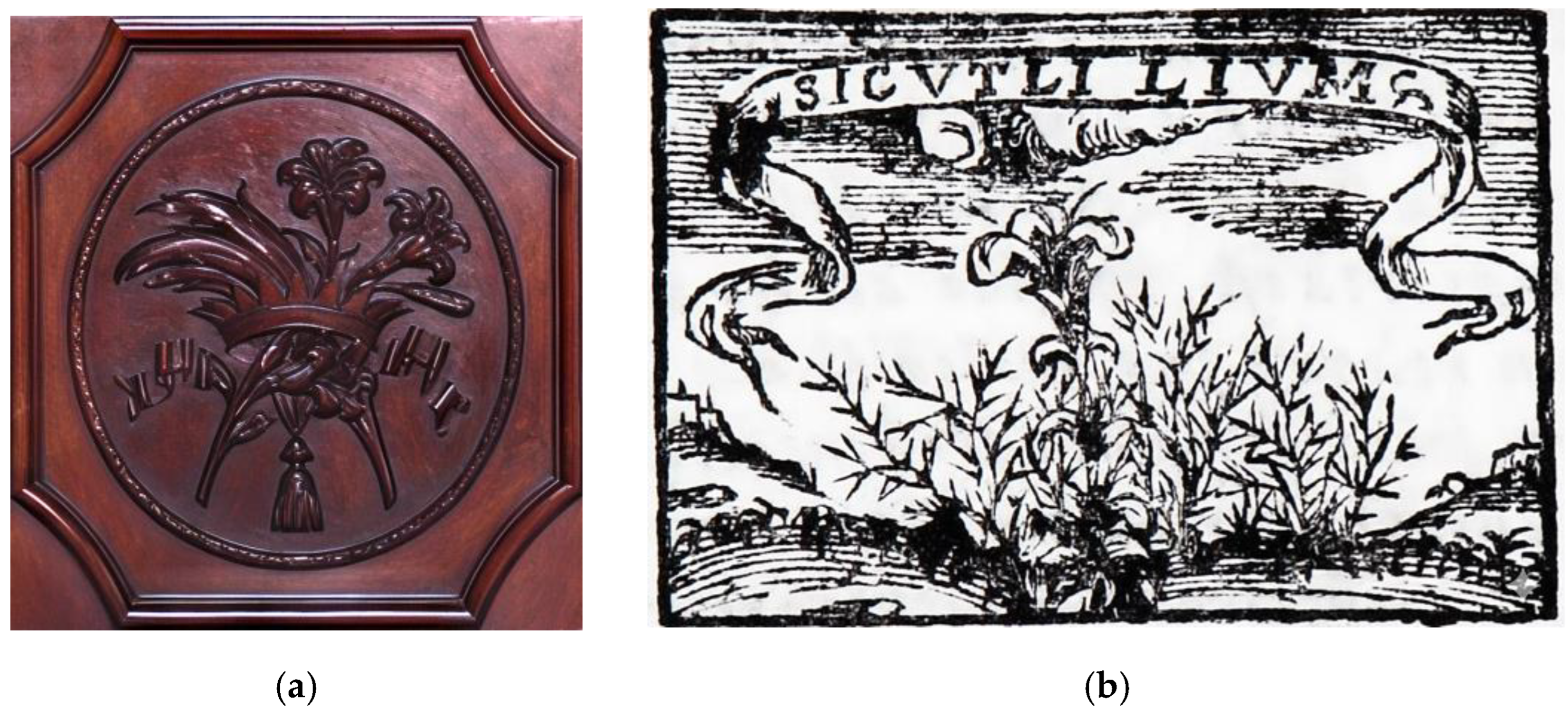 - Salvador González, José María. 2014. Sicut Lilium Inter Spinas. Metáforas Florales En La Iconografía Mariana Bajomedieval a La Luz de Fuentes Patrísticas y Teológicas. Eikón Imago 3: 1–32. [Google Scholar] [CrossRef]
