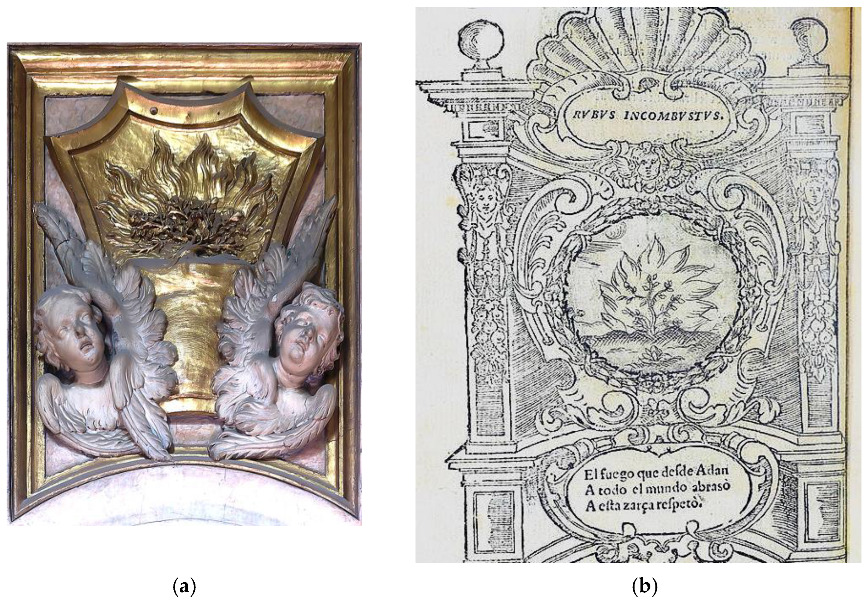 ), where Mary is revealed as the “burning bush of Moses”109 (Figure 21a). This biblically rooted motif is reinterpreted in Marian terms as an exaltation of her incorrupt virginity. Nevertheless, the bush embodies a deeper significance, serving as a manifest sign of her superiority as the one chosen by God, through a visual paraphrase of the passage from Exodus: “Ego sum qui Sum”.1103. Conclusions