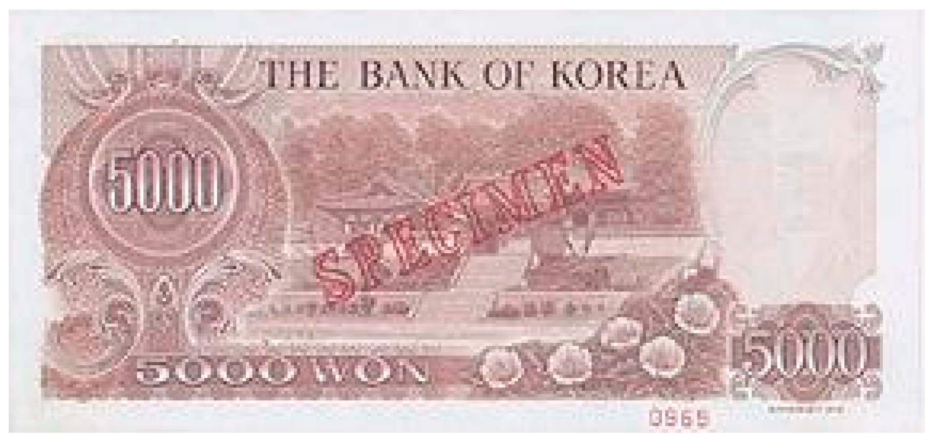 Yulgok’s public visibility increased even more when his image was incorporated into the design of Korean banknotes. At the beginning of the 1970s, with the expansion of the economy and rising prices, the state issued 5000 wŏn banknotes for the first time. It was the largest denomination in circulation until June 1973, when 10,000 wŏn banknotes first appeared. Circulated from 1 July 1972, the 5000 wŏn banknote featured Yulgok’s portrait on one side (