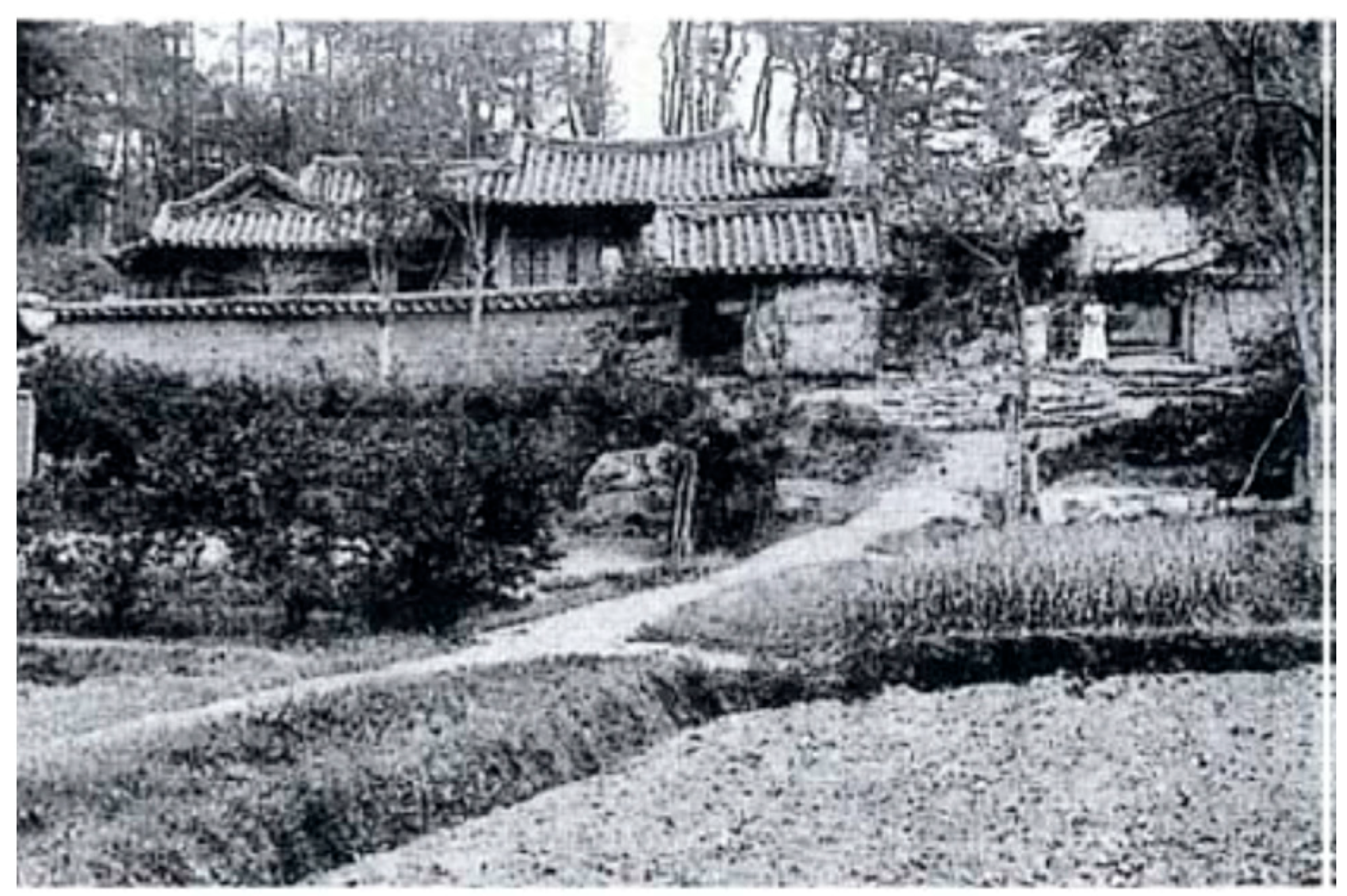 Figure 4), surrounded by thatched-roof houses and rice paddy fields. Over the centuries, the place had become a place of pilgrimage and reverence for Yulgok’s followers. Even King Chŏngjo (r. 1776–1800) visited the place in 1788, and ordered the construction of a building to preserve Yulgok’s personal belongings and his portrait. As one of the oldest preserved Korean houses, the residence was designated a treasure (K.
