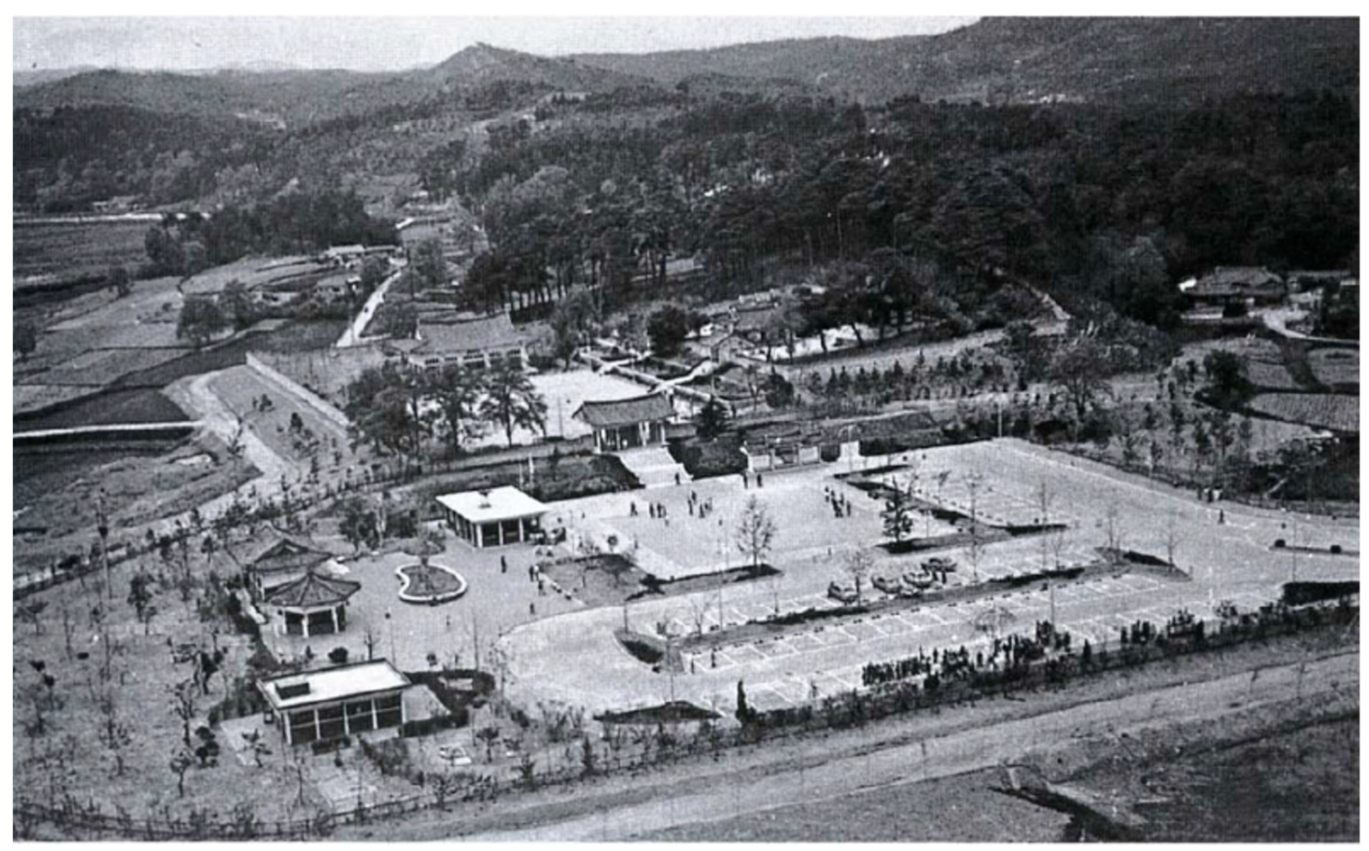Sîntionean 2021), these projects were not mere restorations but systematic efforts to reimagine heritage sites so that they embodied both tradition and the national identity of a modern Korea. Under the guidance of the OCP and often following direct presidential orders, historic places were “cleansed” of elements deemed inappropriate and reconstructed to fit an idealized vision of Korean tradition. These interventions combined grandiose monuments with the construction of buildings imitating Chosŏn-era architecture using cement, enlargement of historic buildings or complete reconstructions, and tiered landscapes. By the time Ojukhŏn’s remaking was finished in 1976, these purification projects already had an established pattern, which had been experimented with in tens of other places