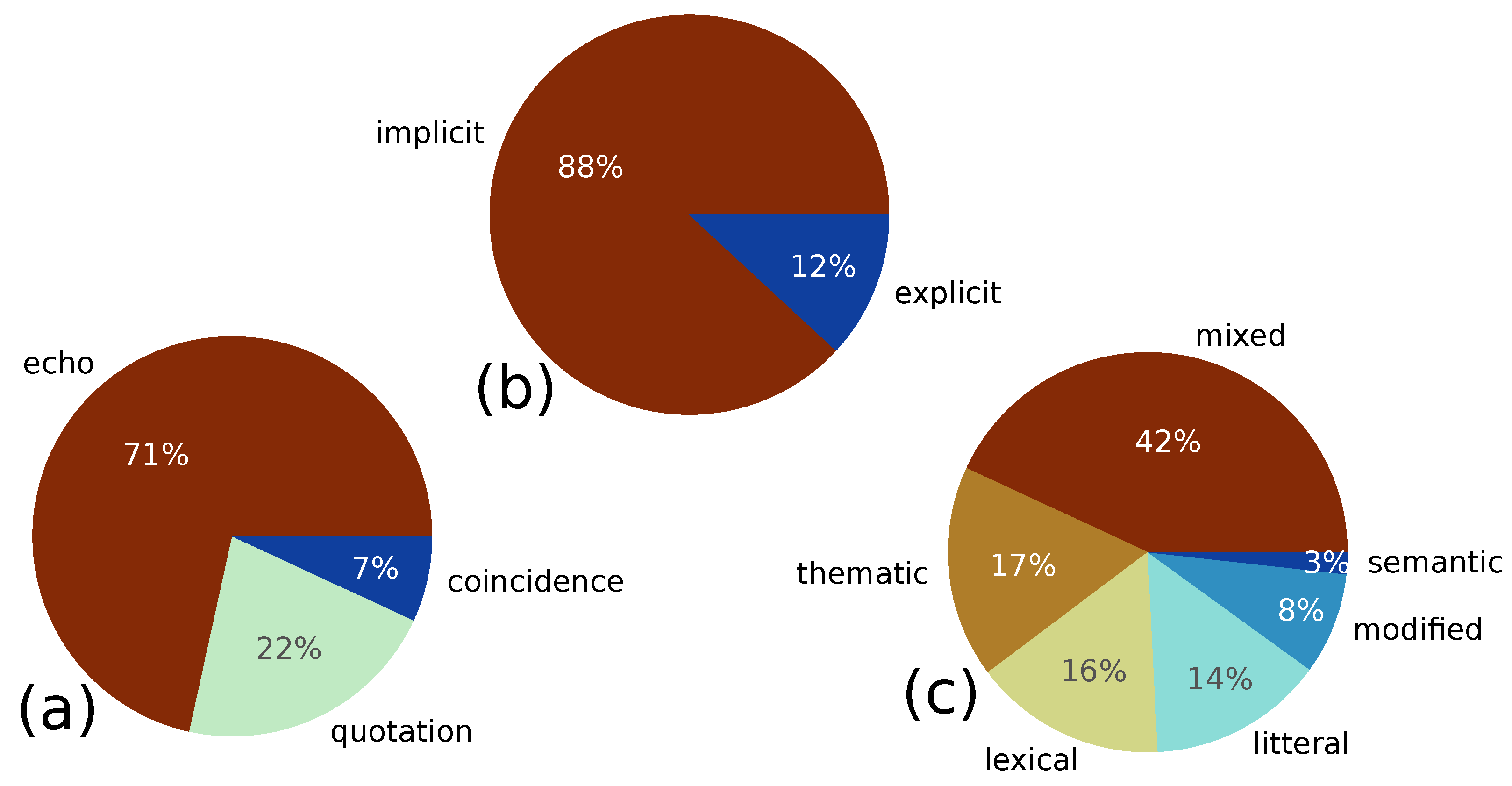 Pseudo-literal cluster: A significant portion of literal and modified (near-literal) quotations, as well as thematic and semantic reuses.
