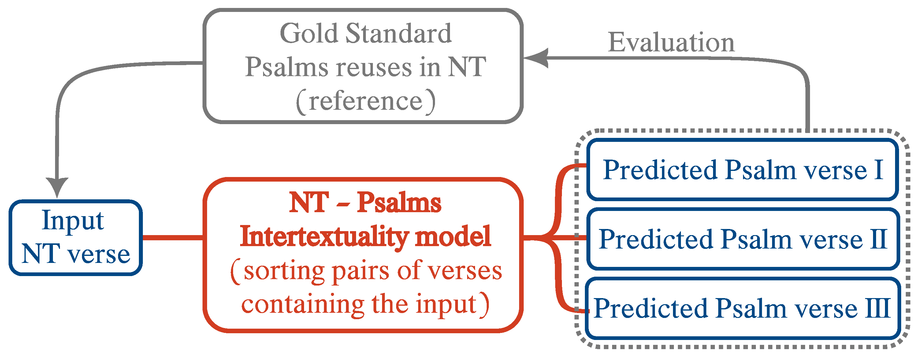 Given the Psalms’ status as Jesus’ prayer book and their shared cultural significance in Jewish and Christian traditions, we selected the reuses of the Psalms in the Greek New Testament as a preliminary case study. We used the Septuagint version of the Psalms because specialists today consider this Greek version to be the most important source of Psalmic quotations in New Testament writings (